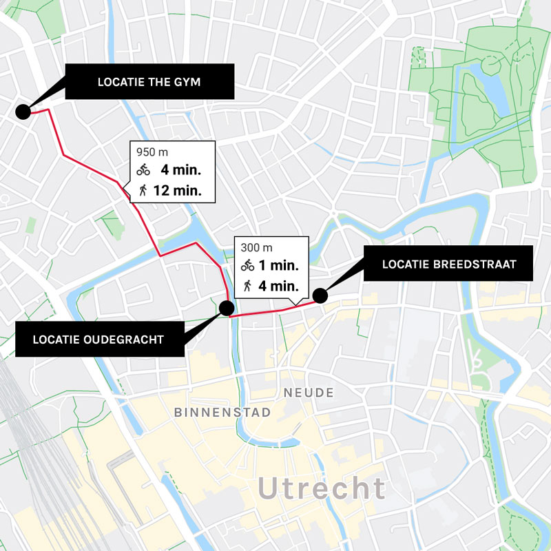 Onze sportschool locaties bevinden zich op een steenworp afstand van elkaar in het mooie centrum van Utrecht.